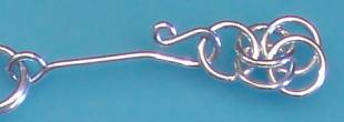 Step 0: As starter weave a 1-2-2 segment; it is of advantage to attach a tie wire, any existing chain, or as shown a piece of wire at the single ring - if you get into trouble and lose track, simply hang the chain down that handle, maybe shake a bit, and all will fall into proper position. Once your chain is long enough, simply remove the handle.