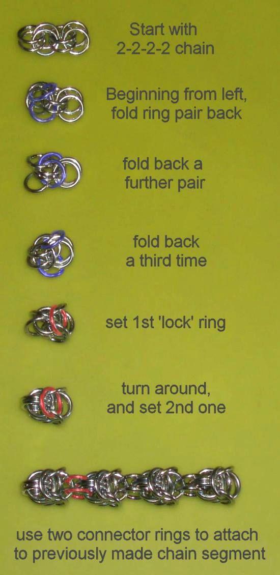 I may add, that there is a variation to this weave, that gives it a more 'Byzantine-like' look: Just turn every second cell around, when connecting the segments. And there is even the possibility to connect the 'cells' directly, without using the connector ring pairs...