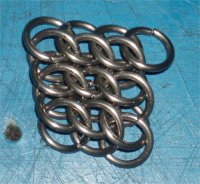 Half Persian 3 Sheet 6 in 1 is one of the most variable weaves for making jewellery; AND it shows a multitude of different looking versions depending on weaving direction. That is based on three facts. One is that HP3-1S6, even woven 'regular', shows a bias of around 20 to 30 degrees in itself. The second one is that this weave shows different behavior when the row are oriented normally compared to the 90deg rotated (sideways aka 'GSG') direction. And the third one is the very different behavior and look of this weave's border rows compared to the center rows of a wider strip. So even different width woven pieces with the SAME direction can get totally different looks. And if you begin to weave HP3-1S6 in biased versions, you will get a multitude of fine looking variants. Just a mailler's playground...