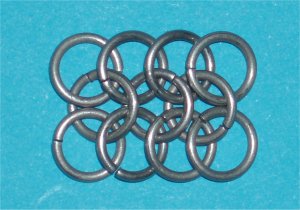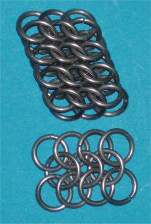 Preferred ARs are above 4.7 for two-column 'classic' GSGs, and above 5.0 for three or more colums - the weave is attractive even at an AR of six, and has basically no upper physical limit. But my usual preferred ARs are in the 5.5 ballpark. The rings used for this sample are made from Spring Stainless 1.35*7.1mm (probably coiled on 1/4", but I don't know, as I bought these as-is), with an AR in the 5.2 ballpark.