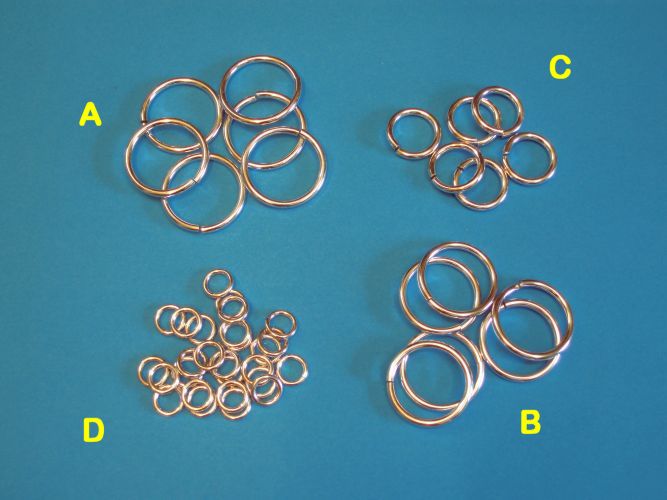 (A, top left) 12swg/2.4mm x 3/4" for the larger face rings,