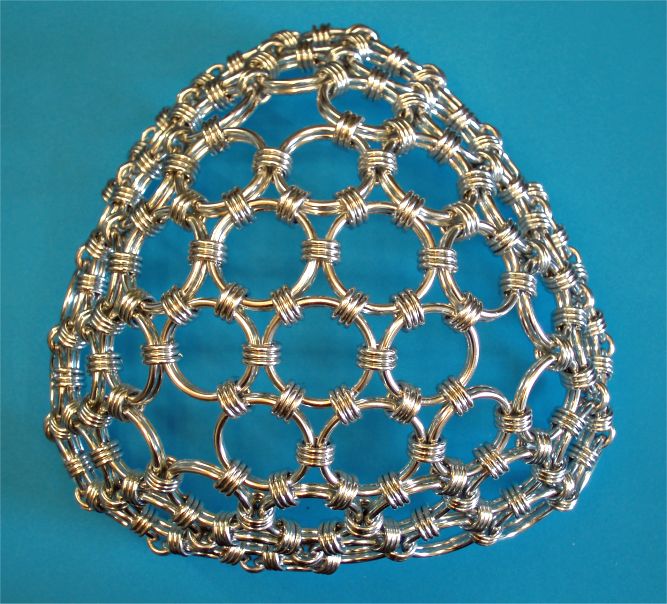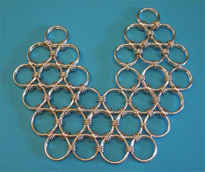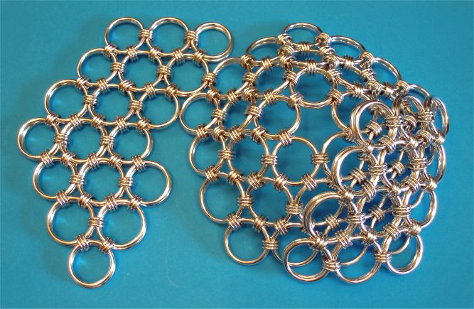 As people tend to miss this info just too often, now printed bold: If you get ring kits from ZiLi Maille or a reseller, the ring kits are calculated for paired-ring connectors, if you decide to weave size XXS, XS, C or S, while size M, L, and XL are calculated for tripled connectors, as shown in this tutorial (that uses the 'L' rings).