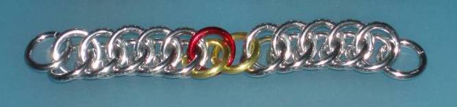 Now layer the two chain segments upon each other in a way, that the layering pattern of the just lengthened ring layer is continuous. It is possible, to use a piece of wire as 'guide', to maintain the layering pattern - similar to the 'on-a-wire' HP starting method shown elsewhere in my tutorials. This is optional (and sometimes impossible if the weave is tight), and may help a beginner, but will surely soon prove unnecessary, anyway.