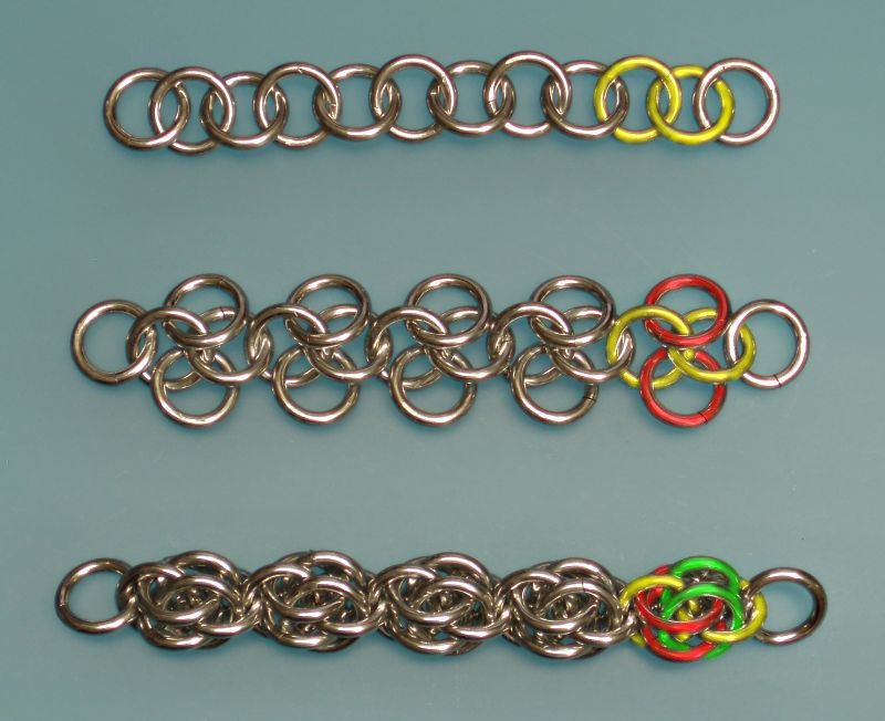 Hint: By extending the preclosed-ring method, one can also waive the step 1 chain completely, but directly add three preclosed rings to an existing chain, and continue with the central one of the three. By using that method, effectively half of a Sweetpea chain's rings can be preclosed before actually weaving - so this becomes not only a quality-enhancing but also quasi a 'speedweave' mailleing method.